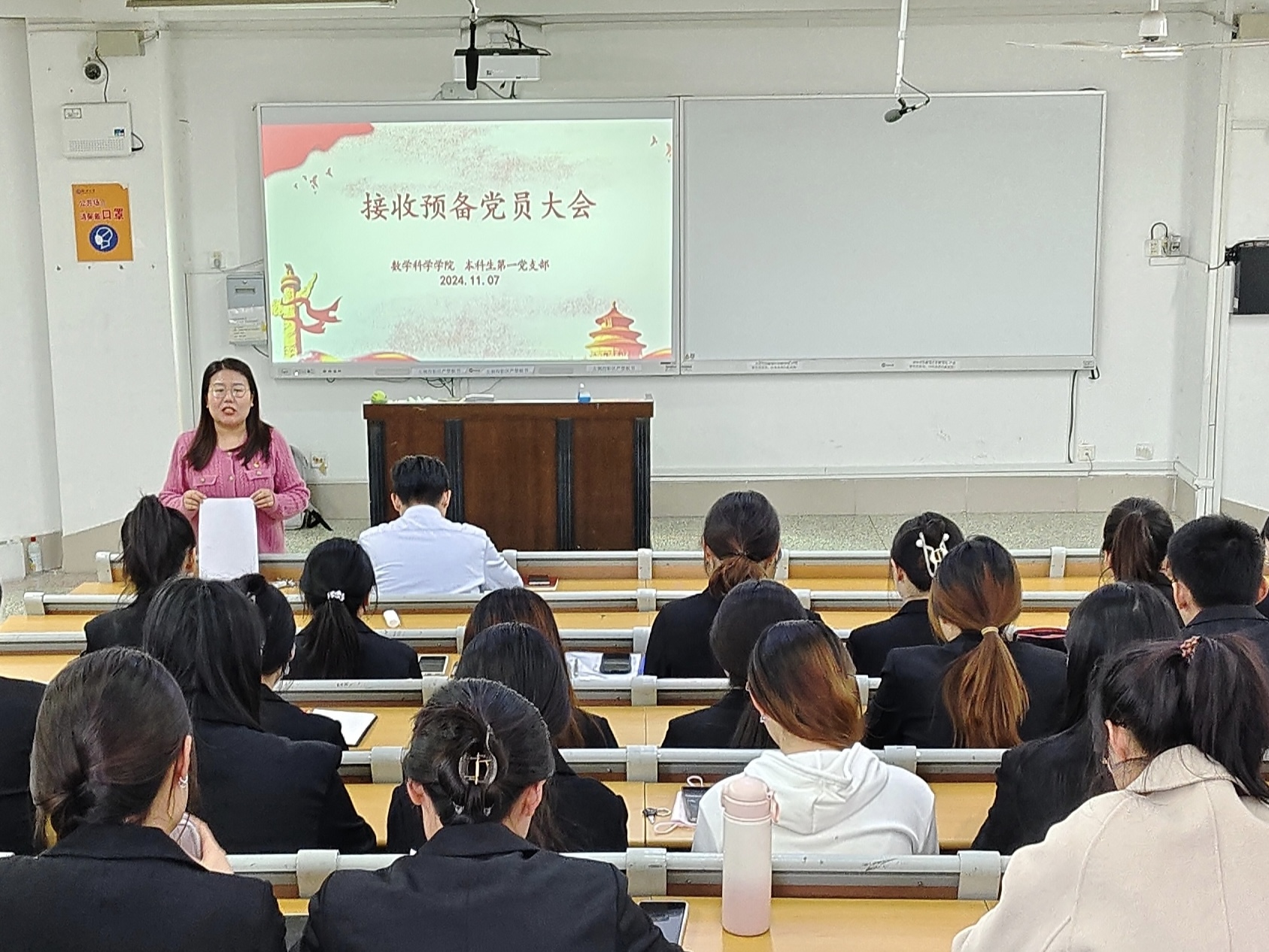 为加强党支部自身建设,推动党的各项工作有效开展,11月7日,28预测(中国)官方网站 本科生第一党支部于11号教学楼C204教室召开接收预备党员大会,会议由第一党支部书记岳琳琳主持,支部全体党员参加。