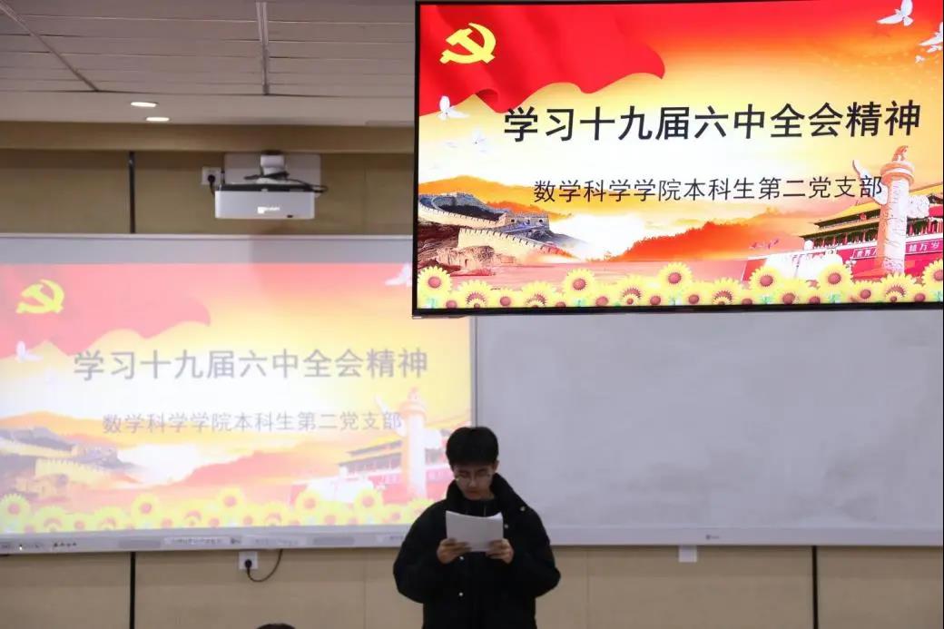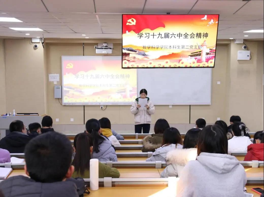 最后,本科生第二党支部推选出两名党支部成员唐明银、丁文秀分享在本次会议中的心得体会。她们表示我们要想将党的十九届六中全会精神学懂、做实,就要争做习近平新时代中国特色社会主义思想的实践者和传播者,用专业服务社会,把青春献给祖国,并得到了党支部成员的一致赞同。