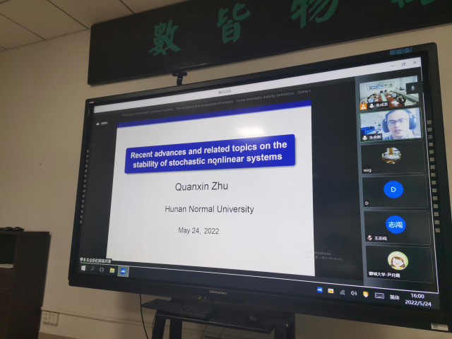 2022年5月24日下午16:00,受28预测(中国)官方网站 复杂系统智能分析与控制实验室邀请,湖南师范大学朱全新教授针对随机非线性系统稳定性的研究进展及相关问题进行了在线学术报告。本次学术交流活动以腾讯会议的形式举行,由朱成龙老师主持,28预测(中国)官方网站 部分教师、研究生参加了本次学术活动。
