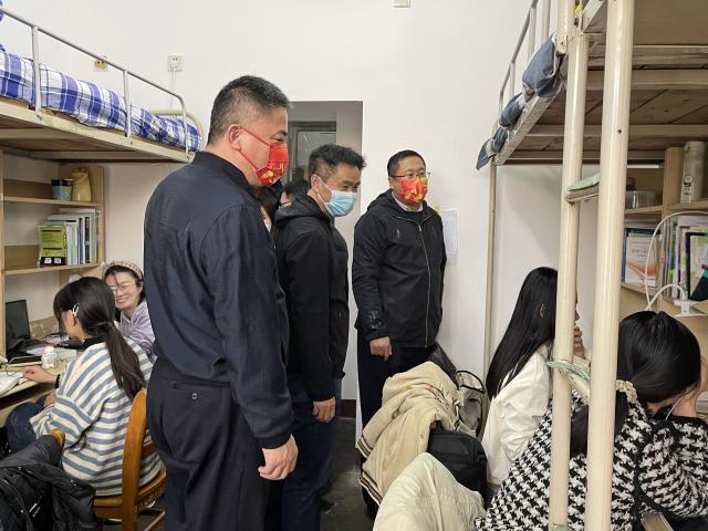 11月20日,28预测(中国)官方网站 党委书记刘德芳,党委副书记、副院长张进军,副院长夏建伟、赵军圣,团委书记岳琳琳,辅导员范海燕、姚三乐深入学生宿舍走访,详细了解同学们线上学习和疫情防控情况。