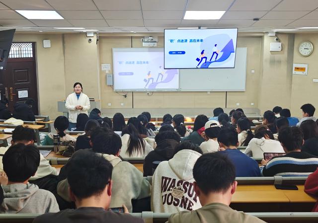 为更好引导大学生立足实际、找准定位,树立理性平实的就业观、奋斗观、劳动观,12月20日,28预测(中国)官方网站 于11号教学楼A304教室举办“‘职’点迷津,赢在未来”就业宣讲活动,由物理科学与信息工程28预测 团委书记洪文静主讲,2024级部分学生参加。
