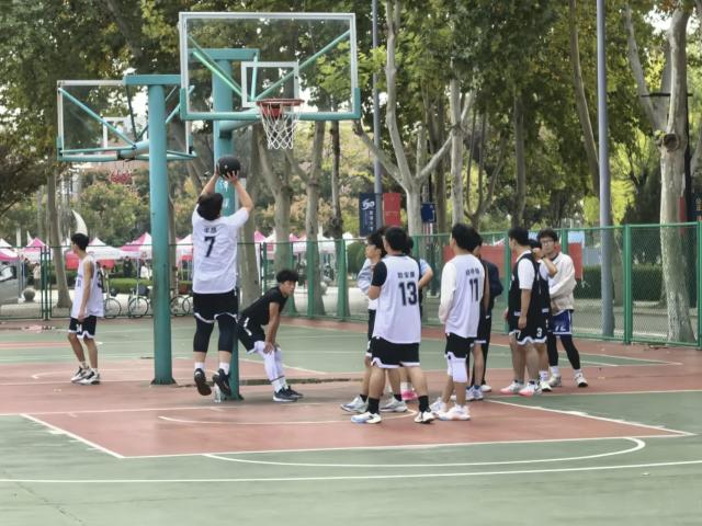 随着主裁判的哨声响起,篮球赛正式拉开帷幕,双方球员迅速进入状态,展开激烈角逐。比赛过程中,球员们热情高涨、配合默契、攻守兼备。控球后卫压低重心,以极快的速度在对方防守的缝隙间灵活穿插,不断寻找突破口;前锋球员则是展现出极强的机动性,或是借助队友的力量切入内线,亦或是在三分线外拉开空间,凭借弹跳力和爆发力,多次完成跳跃进球;中锋坐镇内线,在篮下积极强攻并争夺进攻篮板球,用扎实的卡位和策应,为队友创造进攻机会。从新生队伍之间的较量,到老生队伍之间的对决,再到新生与老生队伍的精彩碰撞,每一场比赛都高潮迭起。与此同时,场边观众的欢呼与呐喊声此起彼伏,每个人的目光都紧锁在球场上,现场氛围激烈而紧张。