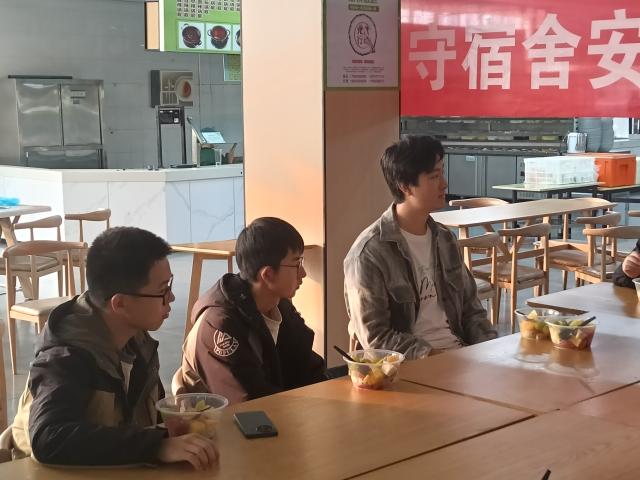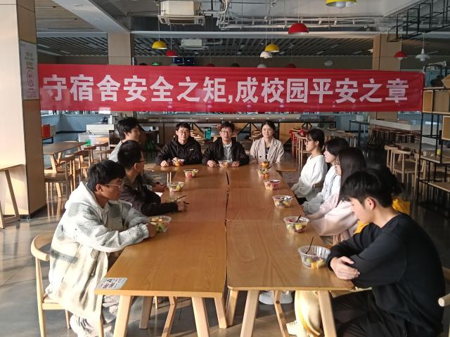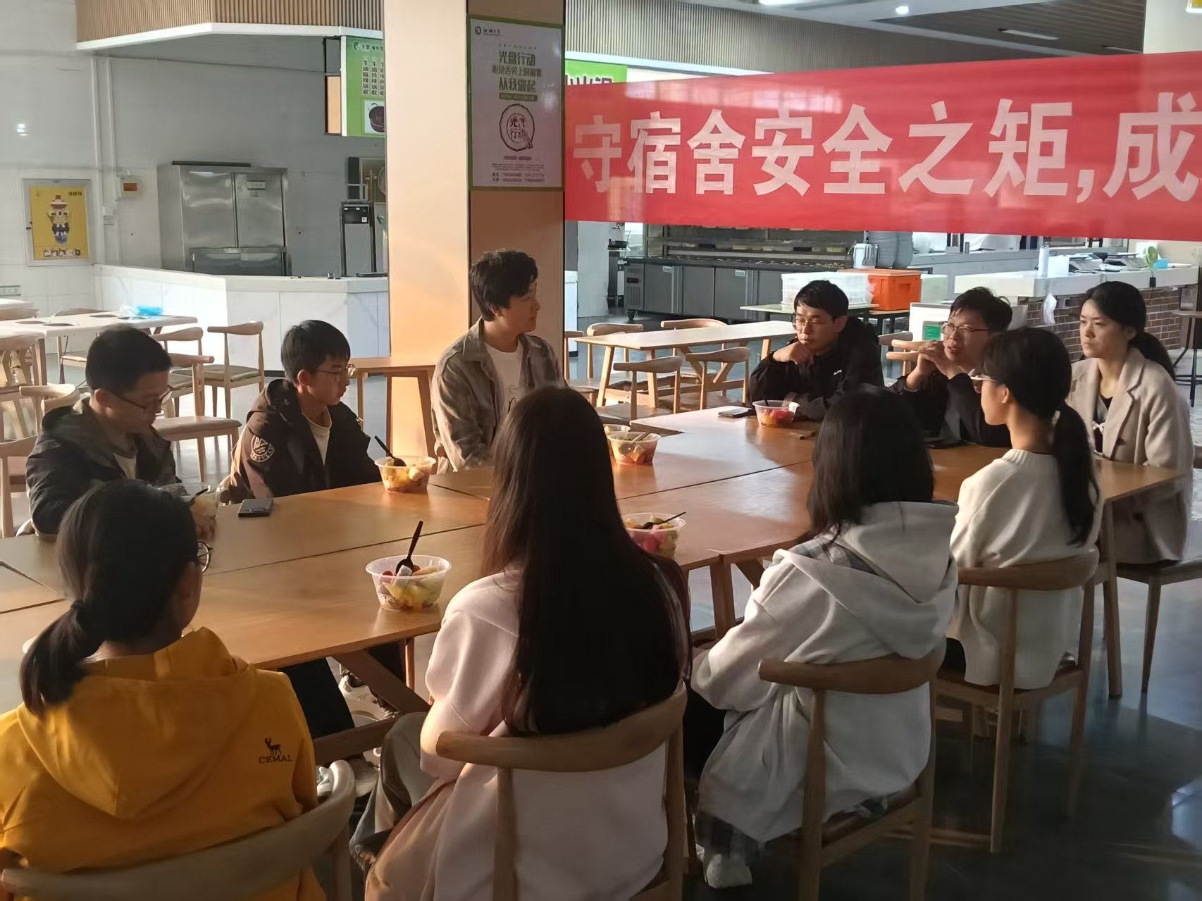 为增强学生宿舍安全意识,筑牢宿舍安全防线,10月30日,28预测(中国)官方网站 于湖苑餐厅二楼开展“守宿舍安全之矩,成校园平安之章”餐厅沙龙活动,此次活动由辅导员赵文豪主讲,辅导员牛玉帅与徐鑫、宿管部吴麟、徐曼芝以及2025级生活委员参与。