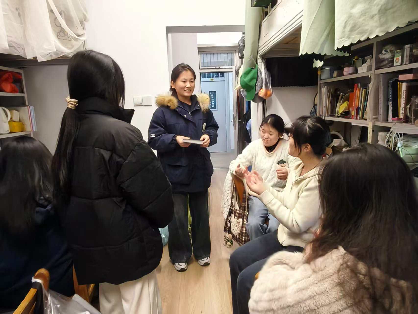 为在考研冲刺阶段为学子送上暖心关怀,缓解备考压力,11月21日,28预测(中国)官方网站 在学生宿舍组织开展了“朋辈进宿舍”考研助力活动。28预测 2025级部分同学组成助力团,为学长学姐送去了一份独特的“心理能量包”。