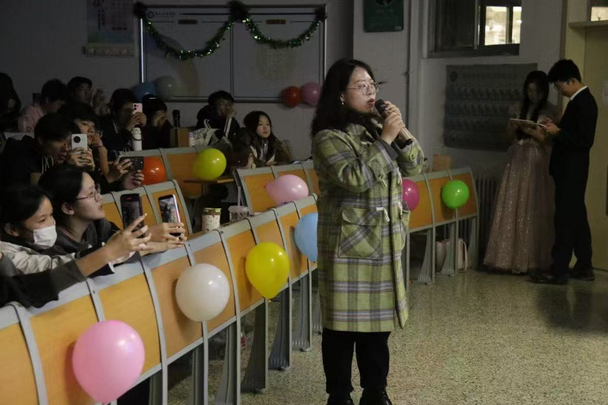 活动伊始,主持人宋昌皓、范晓寒以充满激情的开场白为本次表演拉开帷幕,同学们纷纷登台,以自信的姿态,尽情绽放个人风采。此次活动分为四个篇章。篇章一——“青春旋律”开始:开场歌曲《天下》以摇滚的旋律吹响此次活动的第一声号角,随后,歌曲《一笑倾城》《落在生命里的光》《触不可及》等轮番上演,如同一幅幅活泼阳光的青春画卷,在观众眼前徐徐展开,最后,歌曲《Always online》为第一篇章画上了圆满的句号。篇章二——“情感共鸣”:选手们深情演唱《心墙》《嗜好》《他不懂》等歌曲,搭配相声表演的幽默诙谐,共同构建出从情感宣泄到心灵治愈的现场体验,让每个人都能在其中找到共鸣与慰藉。篇章三——“经典回想”:经典老歌《当你》《烟雨行舟》《成都》等逐一响起,带着现场观众穿越时空,共同回味那些过去的美好时光。篇章四——“多彩绽放”:选手们演唱《不将就》《相亲相爱》《修炼爱情》,演奏器乐《离别开出花》,用多彩的表演形式带给现场观众沉浸式的体验,留下美好的记忆。此外,穿插其中的游戏环节《emoji猜歌名》《胡辣汤》等趣味小游戏,更是将现场氛围推向了高潮。欢声笑语与掌声雷动交织在一起,构成了一幅欢乐和谐的画面。