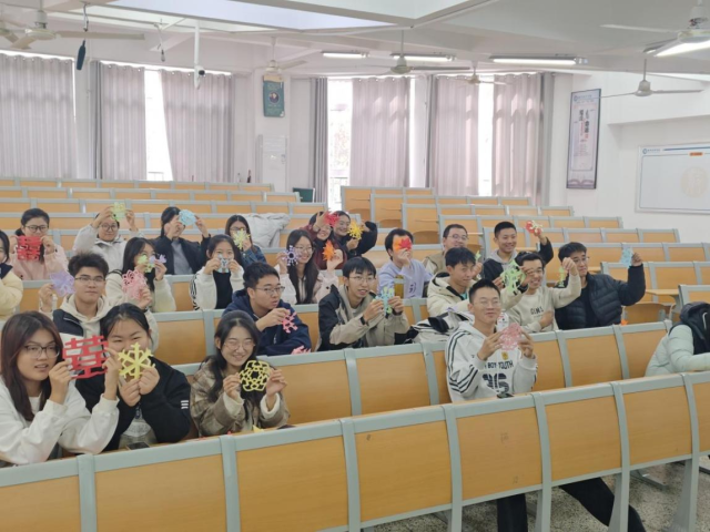 活动伊始,“逛三园”游戏迅速点燃现场气氛,同学们在轻松愉快的节奏中踊跃参与,初见时的拘谨也在欢声笑语中悄然消融。随后进行的“你比划我来猜”环节将现场氛围推向高潮,表演者生动形象的肢体语言与猜词者机智灵动的联想相映成趣,默契配合之间,彼此的距离不断拉近。最后的剪纸环节则为整场活动注入一抹温馨色彩,同学们在细致创作中互帮互助,于指尖流转中传递关怀与暖意。从破冰到协作,再到共情,三个环节层层递进,如一条渐次升温的情感纽带,将“凝心聚力”的内涵融入每一处细节,也让“互爱同行”从口号化为真切可感的集体温度。