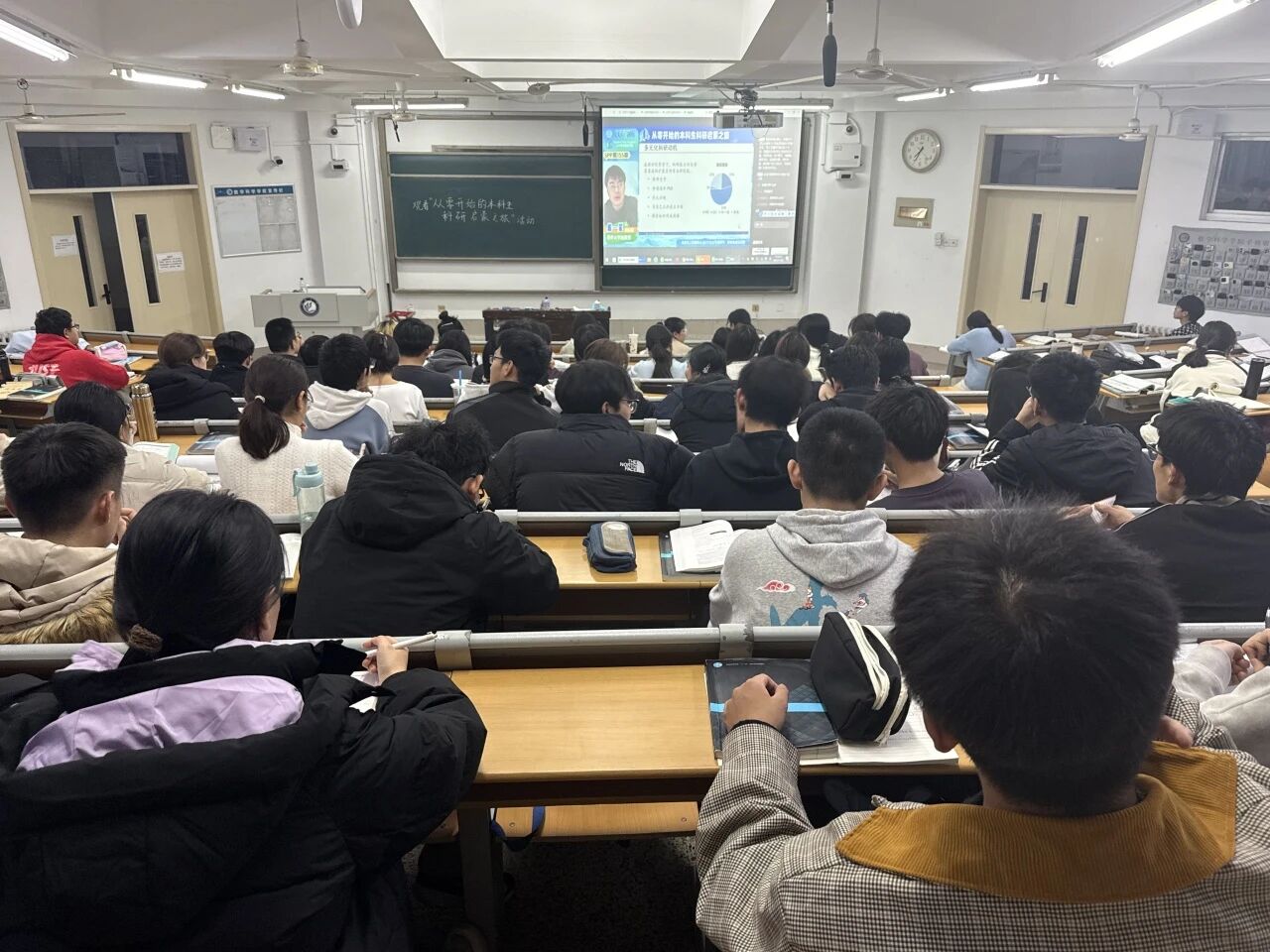为培养学生科研思维,拓展学生职业发展视野,11月26日,28预测(中国)官方网站 于11号教学楼A104、A204、A207教室组织2025级学生观看“从零开始的本科生科研启蒙之旅”SPP第155期直播,本次直播课由南开大学副教授戴一冕进行主持。