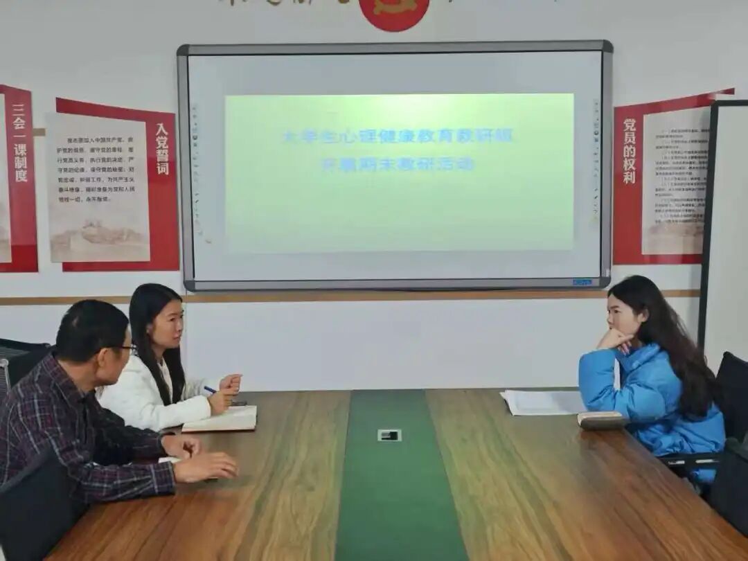首先,与会教师们结合各自的教学实践,就本学期课程的教学设计、课堂互动、案例运用及学生反馈等方面进行了全面复盘。大家分享了在激发学生兴趣、应对常见心理问题、营造安全课堂氛围等方面的成功经验与有效策略,实现了优质教学资源的共享与智慧碰撞。然后,针对当前大学生普遍存在的如学业压力、人际交往、情绪管理与生涯规划等心理热点与难点问题,教师们进行了专题研讨。通过案例督导的形式,共同剖析教学中的重点与瓶颈,商讨更贴合学生实际需求的教学内容和干预方法,力求使心理健康教育更加精准、高效。最后,老师们就期末考试的内容和形式进行了研讨。