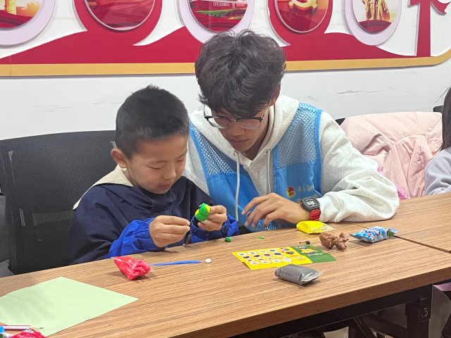 首先,志愿者通过趣味PPT、卡通视频等生动形式,带领孩子们认识“开心”“生气”“难过”“害怕”等基本情绪,帮助他们理解情绪的多样性,引导孩子们学会关注自己的内心感受。随后,进入手工创作环节,志愿者分步骤指导孩子们挑选黏土、彩纸、画笔等材料,鼓励他们通过捏、揉、剪、画等方式表达自己内心的情绪。在志愿者的耐心指导下,孩子们充分发挥想象力,让每一份情绪都有了属于自己的形状。在最后的分享环节,小朋友们依次举起自己的作品,大声讲述背后的情绪故事。其他孩子认真倾听、积极回应,现场气氛温暖而真诚。在表达与交流中,孩子们不仅学会了勇敢表达自己的情绪,也学会理解和共情他人情绪。