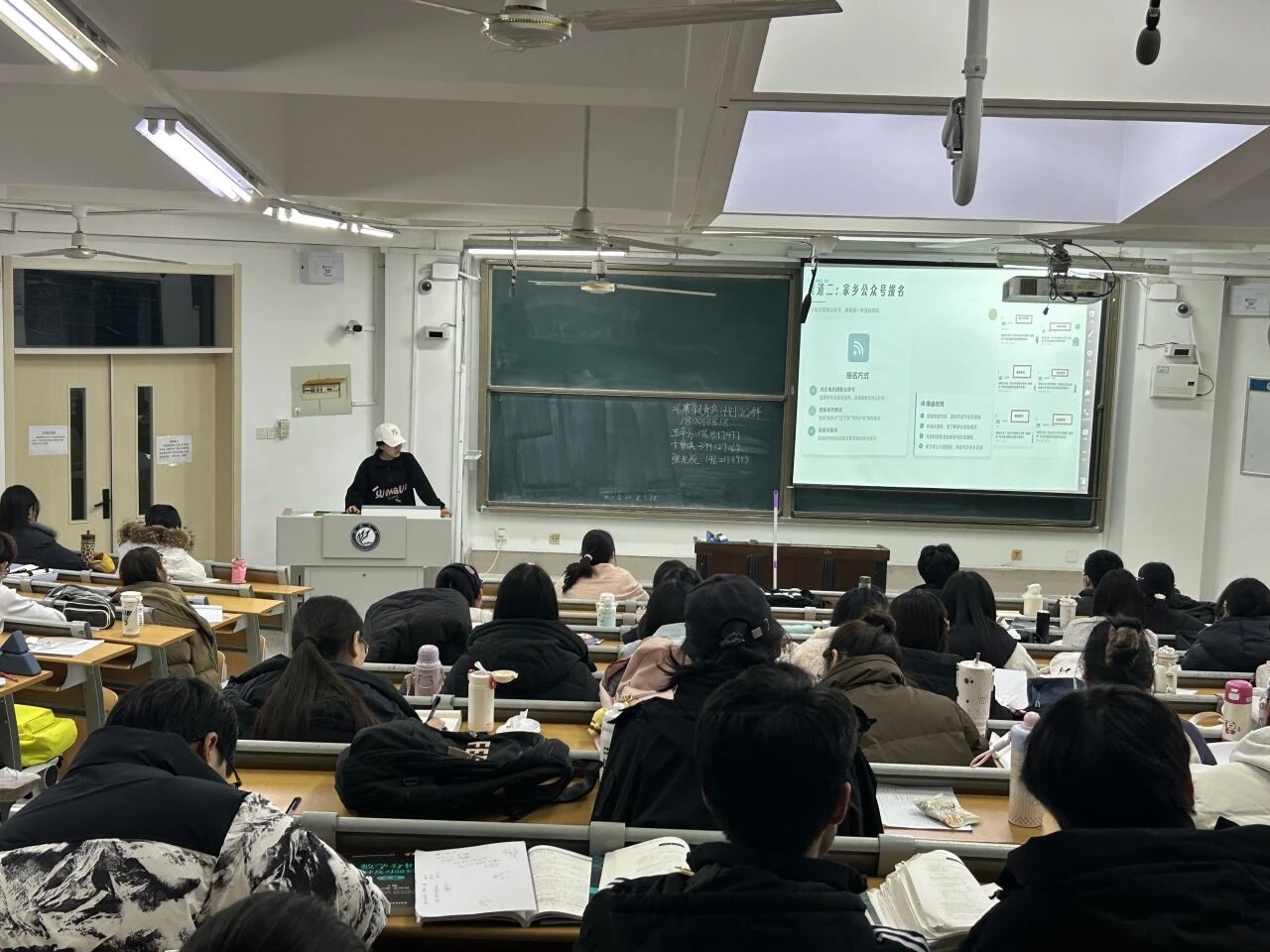 卞梦琪同学围绕“青鸟计划”背景及价值、报名流程及注意事项,结合短片进行讲解,条理清晰、重点突出,将四个报名渠道、地区报名时间差异等关键信息逐一讲清。现场同学们全神贯注聆听,不时点头回应,参与热情得到显著提升。