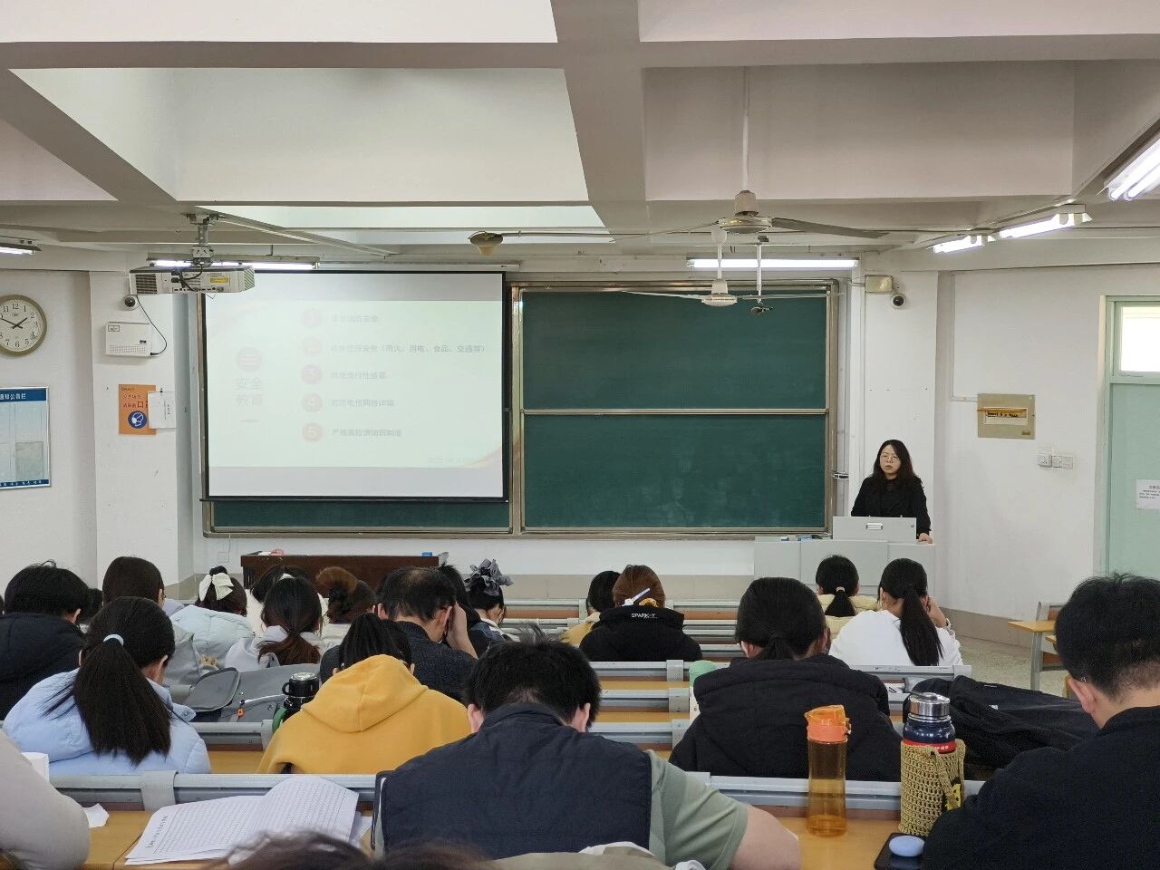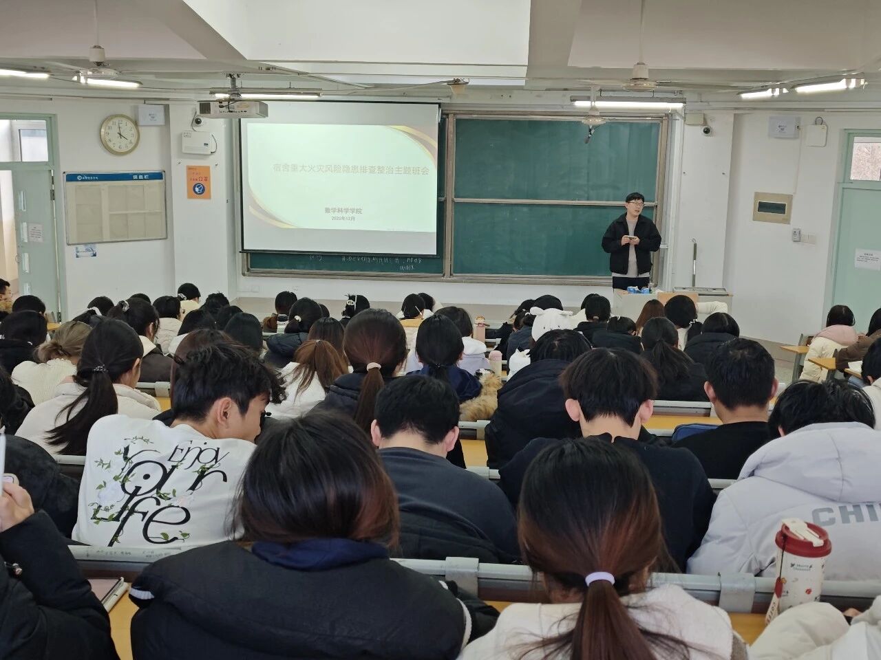 各班班主任围绕火灾风险隐患排查整治专项行动的核心要求,结合校园消防安全实际,从多维度展开讲解。针对宿舍安全,班主任重点强调严禁使用电炉、卷发棒等违规电器,禁止存放酒精、打火机等易燃易爆物品,提醒学生及时清理宿舍内快递箱、废纸等易燃杂物,杜绝吸烟、乱扔烟头等危险行为。在教室用电管理方面,班主任着重要求学生做到自习或录课结束后关闭所有电源,严格遵守教室用电规范,从细节处规避火灾隐患。班会结束后,同学们表示,将牢记消防安全准则,自觉遵守校园消防规定,共同守护校园安全环境。