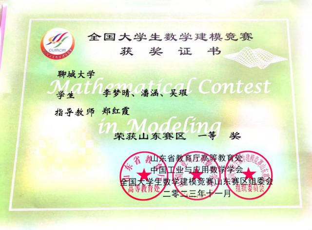 2023.06 聊城大学数学建模竞赛二等奖