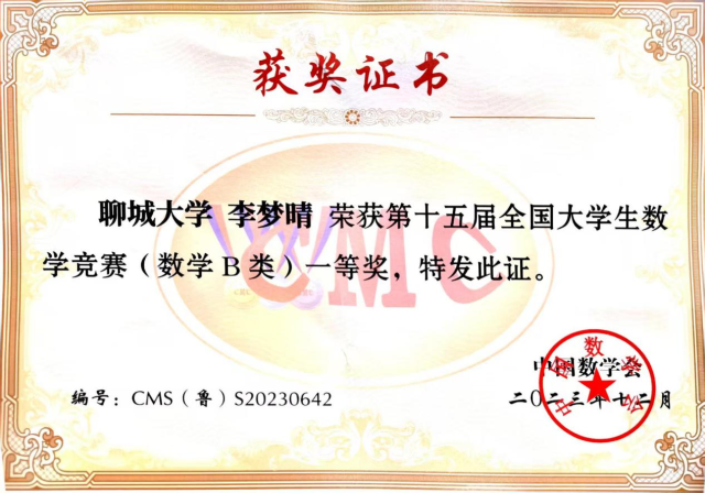 2023.12 聊城大学二等奖学金