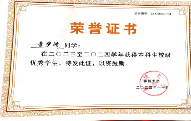 2024.11 聊城大学本科生校级优秀学生
