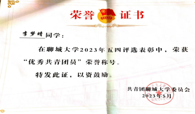 2023.05 聊城大学优秀共青团员