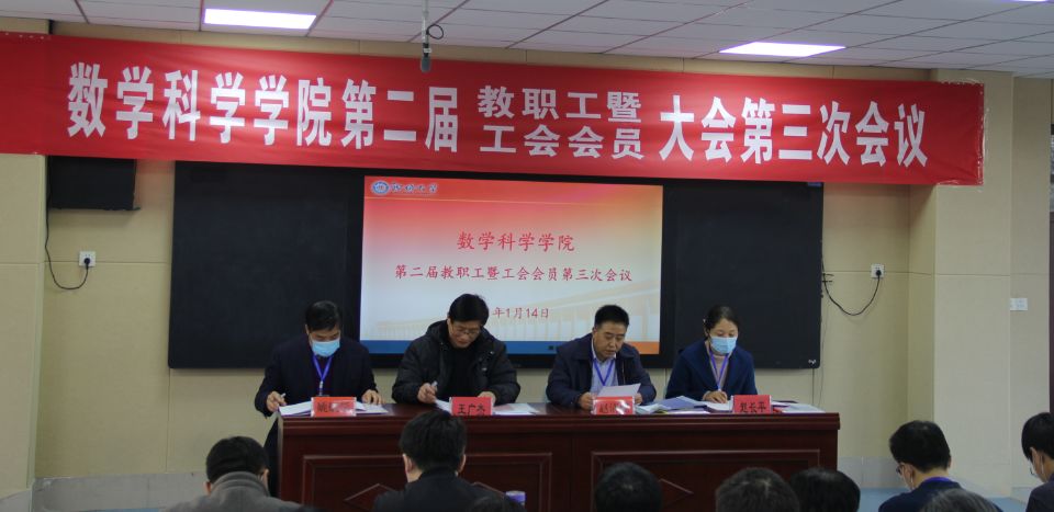 1月14日下午,28预测(中国)官方网站 在西校区11号教学A201举行第二届全体教职工暨工会会员大会第三次代表大会,校工会副主席王广杰、28预测 党总支书记赵清理、院长姚炳学、党总支副书记副院长孙世全、副院长范丽亚、夏建伟,分工会主席办公室主任赵长平及全体教职工参加会议。