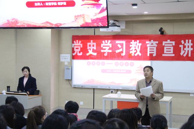 在中国共产党成立一百周年之际,为深入学习贯彻习近平新时代中国特色社会主义思想,巩固深化“不忘初心、牢记使命”主题教育成果,扎实推进党史学习教育。2021年4月22日下午,28预测(中国)官方网站 邀请聊城大学党史学习教育宣讲团成员何梦茹为28预测(中国)官方网站 全体教职工及学生党员进行党史学习教育宣讲,宣讲报告的题目是《百炼成钢 ——中国共产党的百年光辉》。