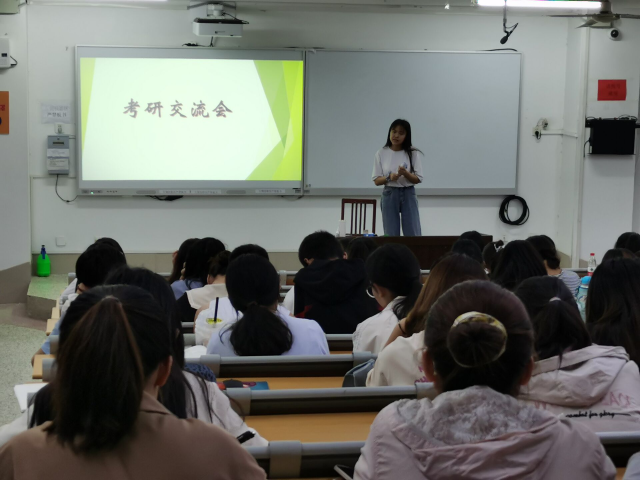 此次交流会共分为两个部分。首先,考研取得优异成绩的五位同学从自身考研经历出发,围绕如何选取专业和院校、制定复习计划、调整心态以及复试中的注意事项等方面谈了自己的亲身体验和感受。潘娇和许敏学姐强调同学们在准备考研时应多个渠道寻找学习资料,合理安排时间,提高复习效率。并建议同学们在考研时不要盲目比较,以免影响自己的心态。王宏懿学长主要从考研调剂方面出发,向同学们介绍了考研信息的获得渠道以及复试的注意事项。张慧和方悦学姐从真题、笔记等具体问题着手,叮嘱同学们要仔细研究真题题型,揣测出题动机。随后的自由提问阶段,同学们就如何选择考研学校,选择什么样的培训班以及复习备战过程中遇到方方面面的问题向学长学姐们寻求意见建议。学长学姐们耐心地为同学们做了解答,并且还向同学们推荐了一些教辅资料。最后,主持人做总结发言。至此,本次考研交流会圆满结束。