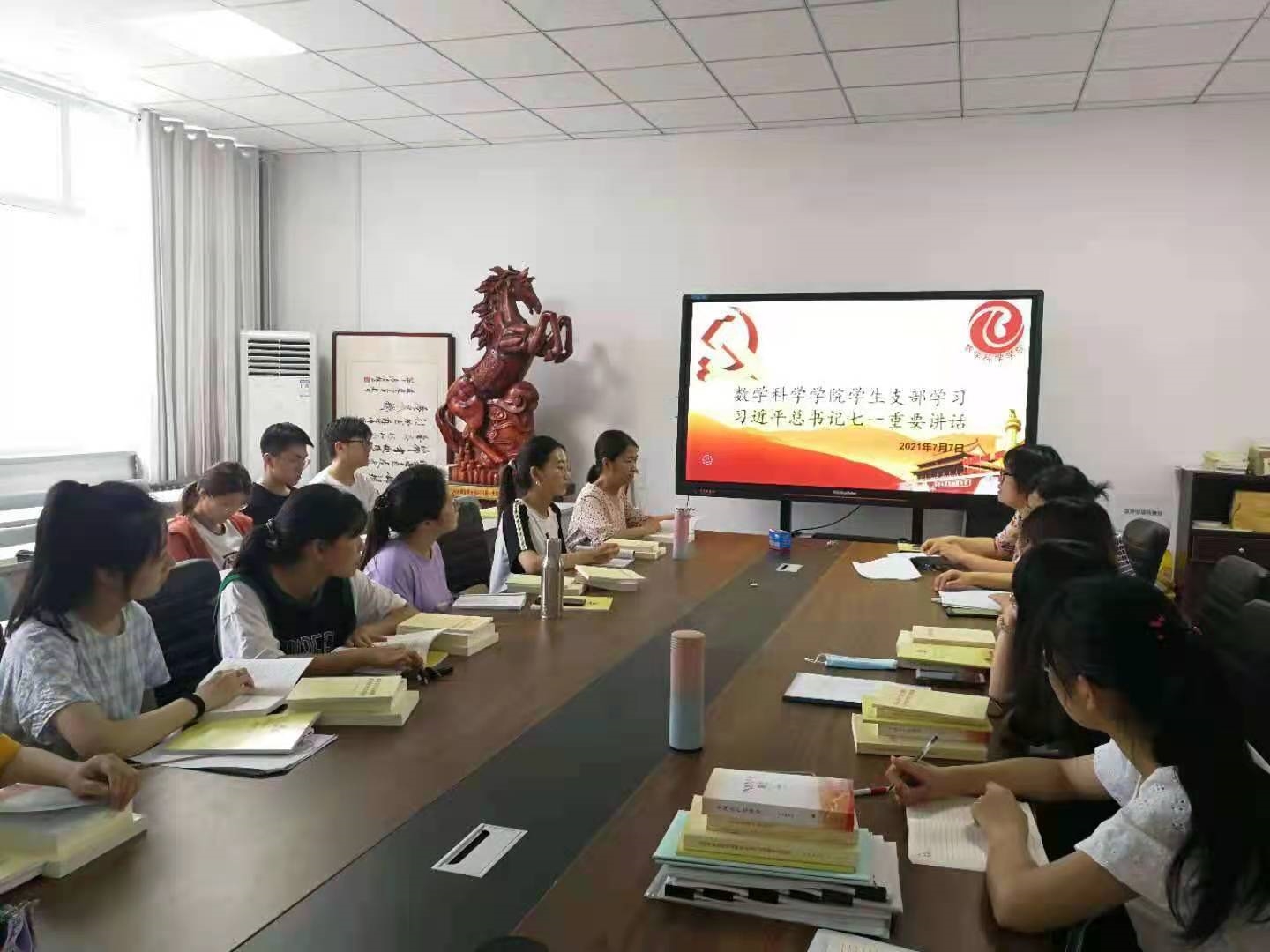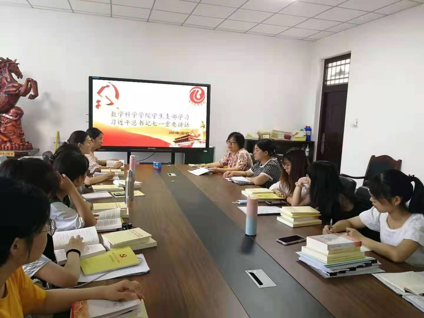 7月7日下午,28预测 学生党支部书记张晓冬、支部委员范海燕、孙云霞与支部全体学生党员,在11#B301召开学习习近平总书记“七一”重要讲话座谈会。