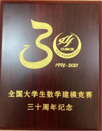 在全国大学生数学建模竞赛举办30周年之际,我校曾现洋与孙忠贵两位老师获全国大学生数学建模竞赛三十周年纪念金质奖章,这是对两位老师为我校数学建模竞赛的发展所做工作的肯定。