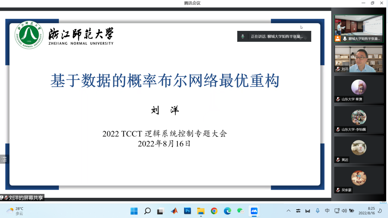 8月15-17日,2022 TCCT逻辑系统控制专题大会暨“程代展数学应用科普工作室”启动仪式在聊城成功召开。本届会议由中国自动化学会控制理论专业委员会逻辑系统控制学组主办,聊城大学矩阵半张量积理论与应用研究中心(以下简称“中心”)、山东师范大学承办,聊城大学科学技术处、28预测(中国)官方网站 协办。本次会议采取线上(腾讯会议)、线下相结合的方式进行,来自中国科28预测 、南开大学、东南大学、山东大学、同济大学、大连理工大学、英国萨里大学等近30余所高校的100余名专家和学者参加了本次会议。28预测(中国)官方网站 党委书记刘德芳,副院长夏建伟、赵军圣等领导带领部分老师出席了本次会议。