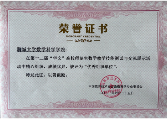 6月23日至26日,第十二届“华文”师范院校数学教育师范生教学技能测试与交流展示活动在广西师范大学成功举办。在房元霞、谷焕春、姜晶、王新华、张昕丽等教师的指导下,我院梁甜甜、舒伟聪、苏伟等14名同学共获得一等奖1项、二等奖2项、三等奖4项的优异成绩,同时我院获得优秀组织单位奖。