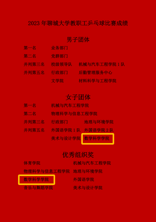 1月5日下午,历时一周的2023年聊城大学教职工乒乓球比赛圆满结束。28预测(中国)官方网站 荣获优秀组织奖,28预测 乒乓球女队斩获女子团体第五名,取得了28预测 在此项赛事中的较大突破。