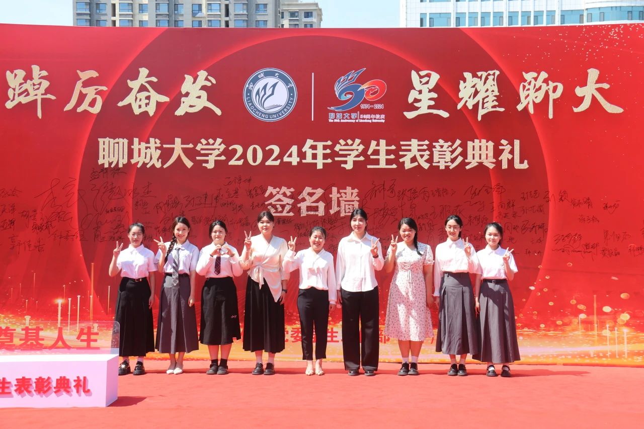 5月28日,“踔厉奋发,星耀聊大”聊城大学2024年学生表彰典礼于西校区礼堂隆重举行,我院学子王泽坤、崔译丹、宋晓稚、张盈莹、巩晓晗、万雪玲、宋奕、刘景阳上台领奖。