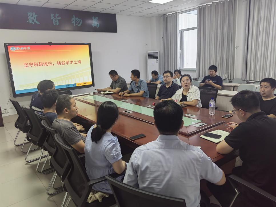 会上,陈国梁副院长带领大家学习了《教育部关于加强高等学校科研诚信建设和学术不端治理的指导意见(教科信〔2024〕2号)》等文件。详细介绍了项目、成果申报及论文写作中的规范问题,强调了学术不端行为的危害性,警示广大科研人员:切勿有投机侥幸心理,坚决杜绝学术不端行为。