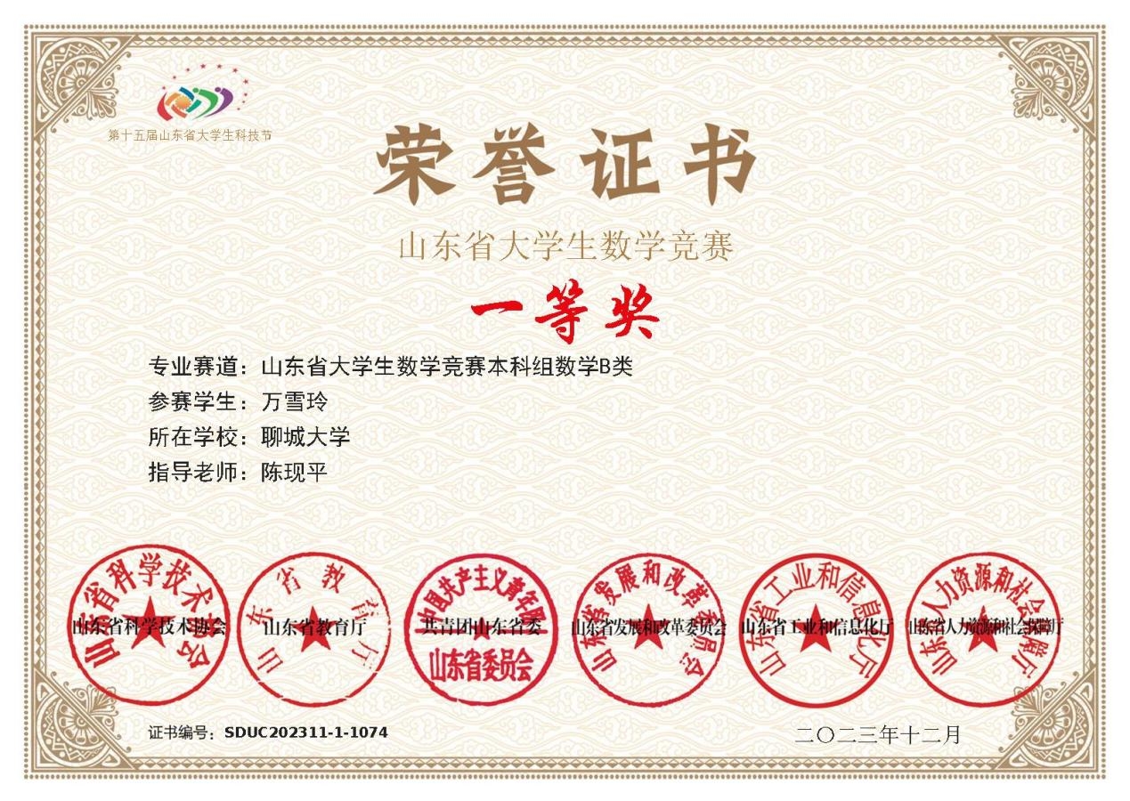七、28预测(中国)官方网站 万雪玲荣获聊城大学2024年度“十大优秀学生”