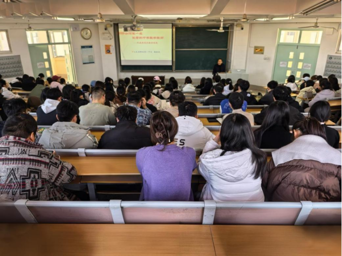 培训会上,朱海英以“扎根时代,淬炼本领,用爱心点亮未来”为主题,分享从聊大校园走向基础教育一线的成长故事。她还结合教务处管理工作与数学教学实践,阐述新时代教师如何平衡教学实践、教育科研与育人职责的方法路径,启迪同学们“教育是一场温暖的修行,作为即将上任的数学教师,要以扎实的专业本领为舟,以真挚的教育爱心为帆,在时代浪潮中载着学生驶向知识与成长的远方”。