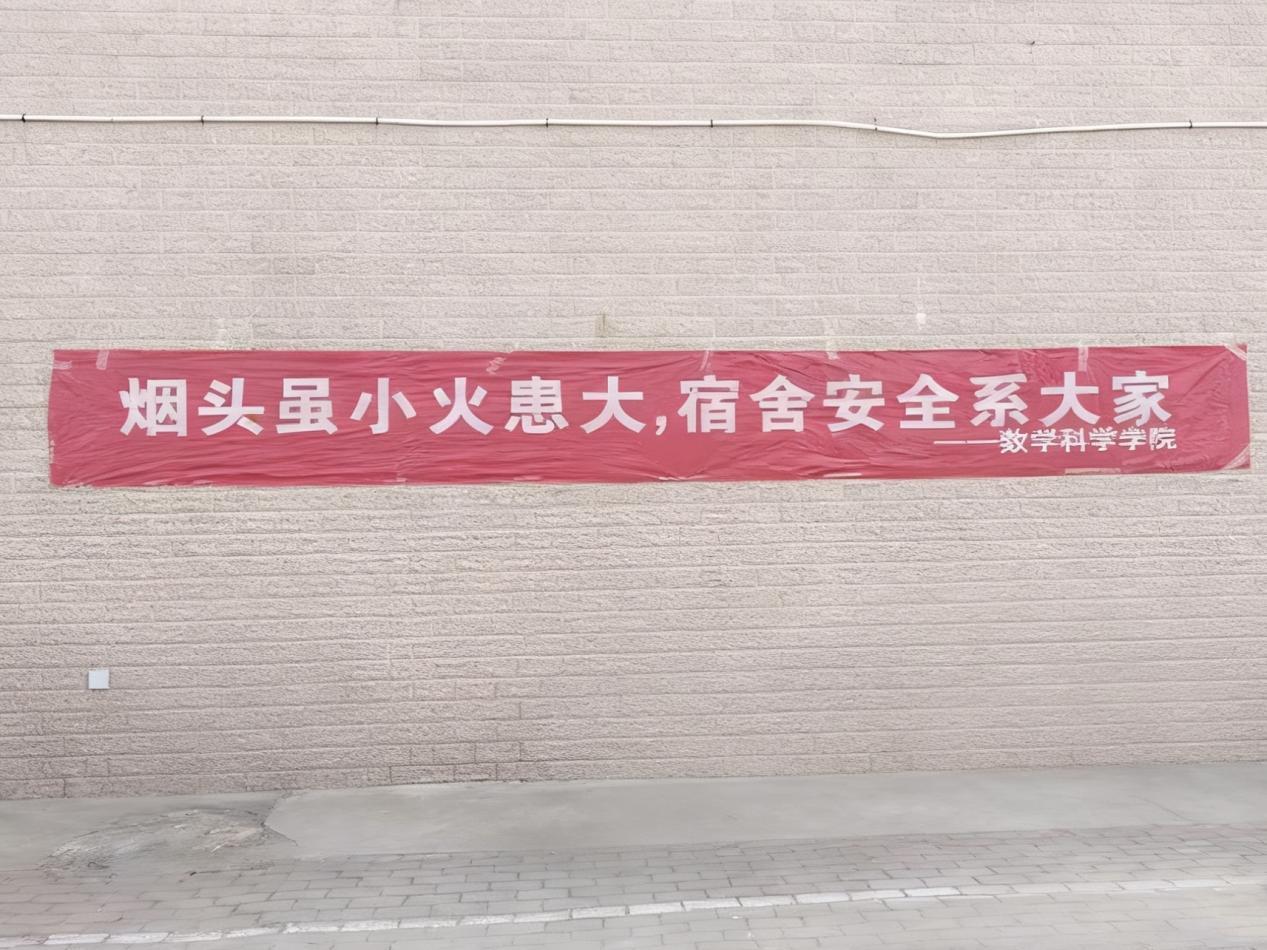 醒目的红色横幅印着“烟头虽小火患大,宿舍安全系大家”,鲜明的标语将安全警示传递到校园角落,时刻提醒着每一位同学:烟草危害要谨慎,防火意识需筑牢。