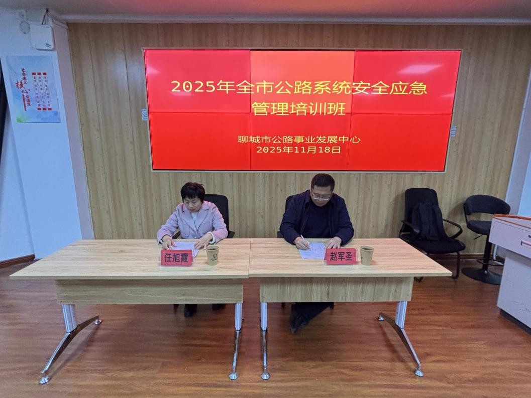 为进一步提升全市公路系统安全应急管理能力,筑牢公路安全发展屏障,11月18日,2025年聊城市公路系统安全应急管理培训班于聊城大学西校区11号教学楼A310教室成功举办。培训班由我院副院长赵军圣主持,市公路事业发展中心机关相关科室及所属单位共计60余名安全应急管理负责人、业务骨干参与培训。