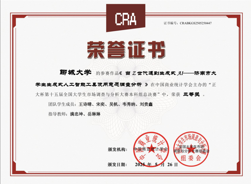 2025.05 “正大杯”第十五届全国大学生市场调查与分析大赛三等奖