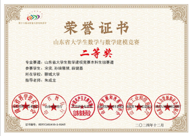 2025.01 聊城大学第十九届“挑战杯”大学生课外学术科技作品竞赛二等奖