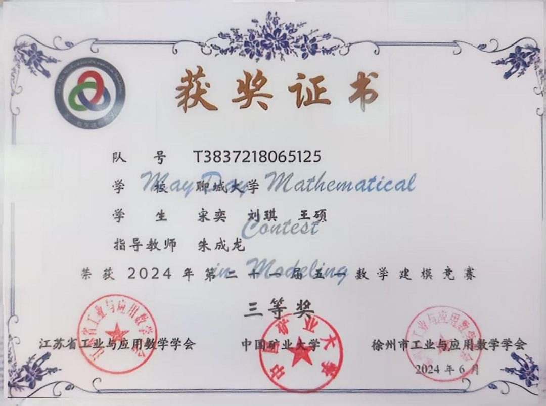 2024.06 2024年第二十一届五一建模竞赛三等奖